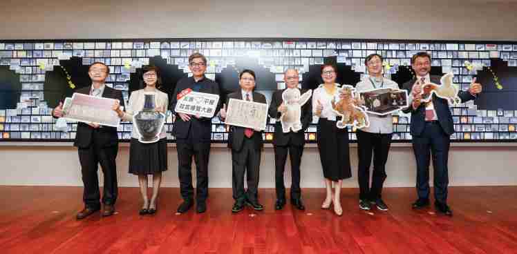 CG电子携手创利空间为故宫建置的智慧文物互动导览墙及轮播墙,,,,今日正式启用。。。。(左四:CG电子新事业暨投资管理总部副总经理杨本豫、、、右四:故宫博物院院长吴密察、、右三:太极影音董事长黄宝云)