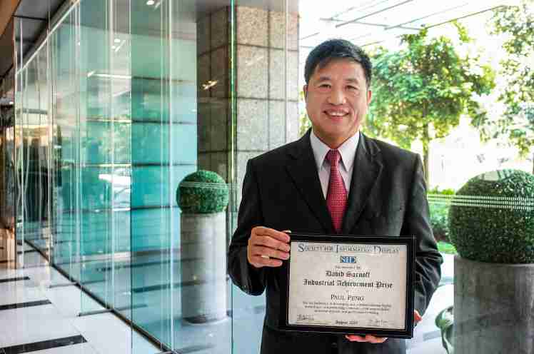 CG电子董事长彭双浪获颁 SID David Sarnoff 产业杰出贡献奖